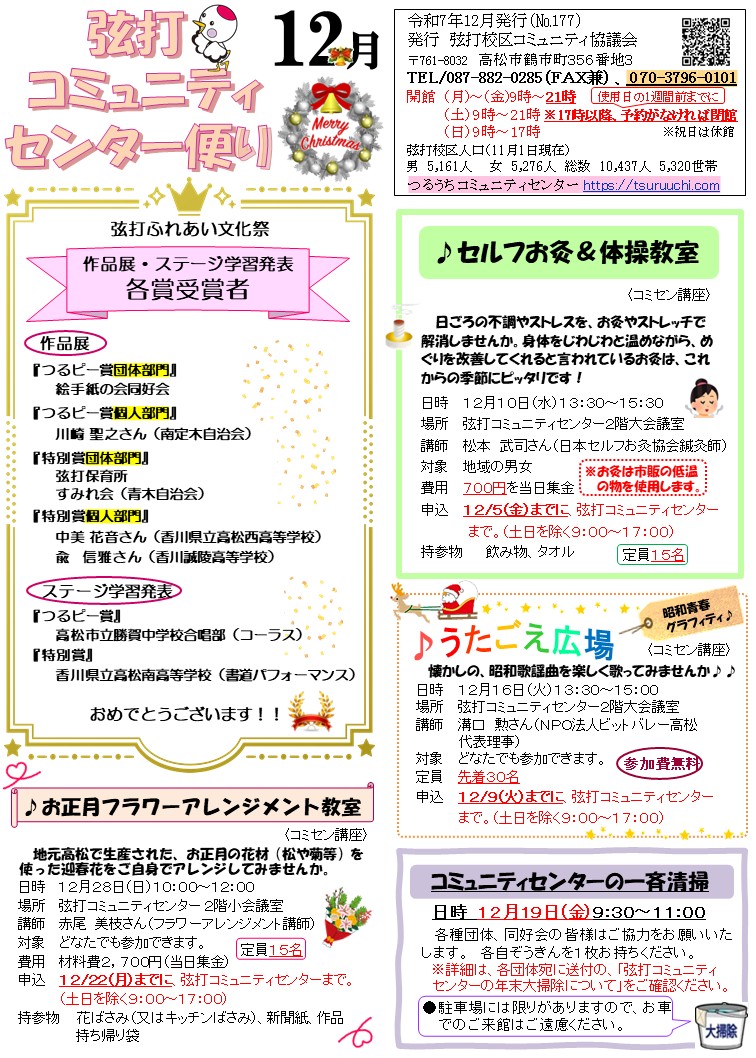 弦打コミュニティセンター便り 令和7年12月 号 広報つるうち 令和7年9月 号 福祉弦打 令和7年9月 号 弦打地区健康カレンダー 令和7年度(問合先:勝賀保健ステーション 電話087-882-7971) 勝賀エリア子育てマップ 令和7年4月(問合先:勝賀保健ステーション 電話087-882-7971) 勝賀エリア 子育て広場講座ご案内 令和7年4月(問合先:勝賀保健ステーション 電話087-882-7971)